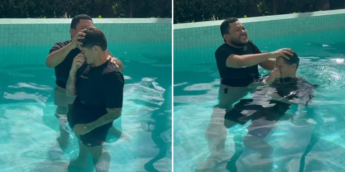 E sua esposa, Gabriela, declarou: “Meu batismo, minha entrega, minha nova história com Jesus”.